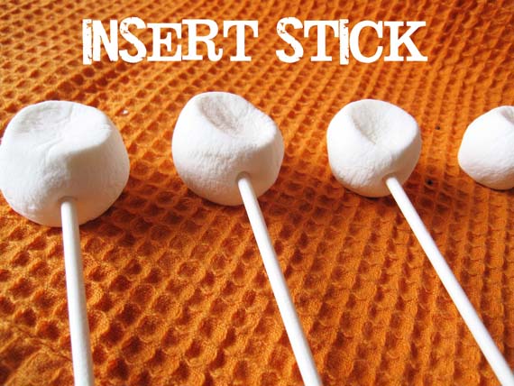 Carefully press your stick into the flattened marshmallow